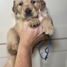 Clark is a male Golden Retriever. Carefully selected as a great representative of his breed, Desi decided to make him part of their program. Desi has passed Good Dog’s screening process, which involved a review of their breeding practices, environment, and the mental and physical health of their dogs.
