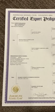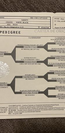 Dino and Coco AKC Certified Export Pedigree. These puppies are the best of the best you can get in the US!