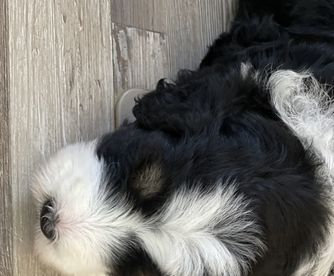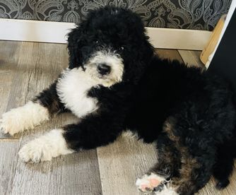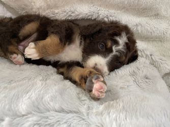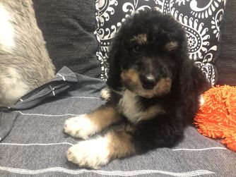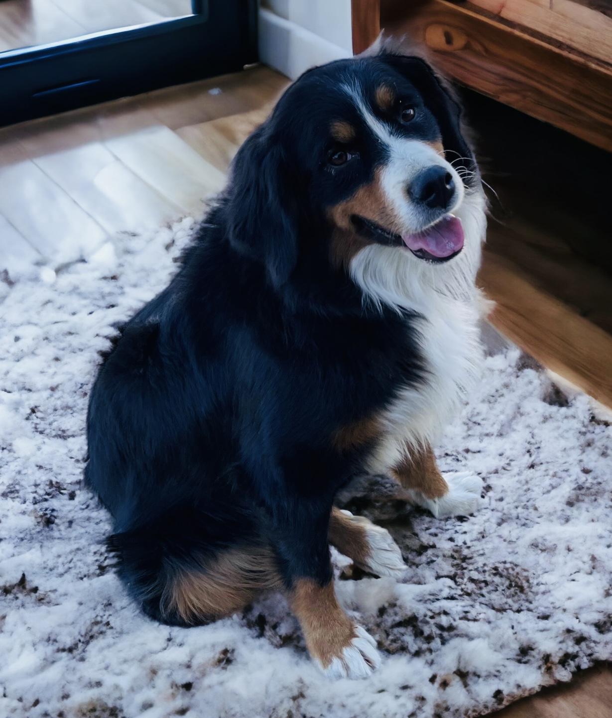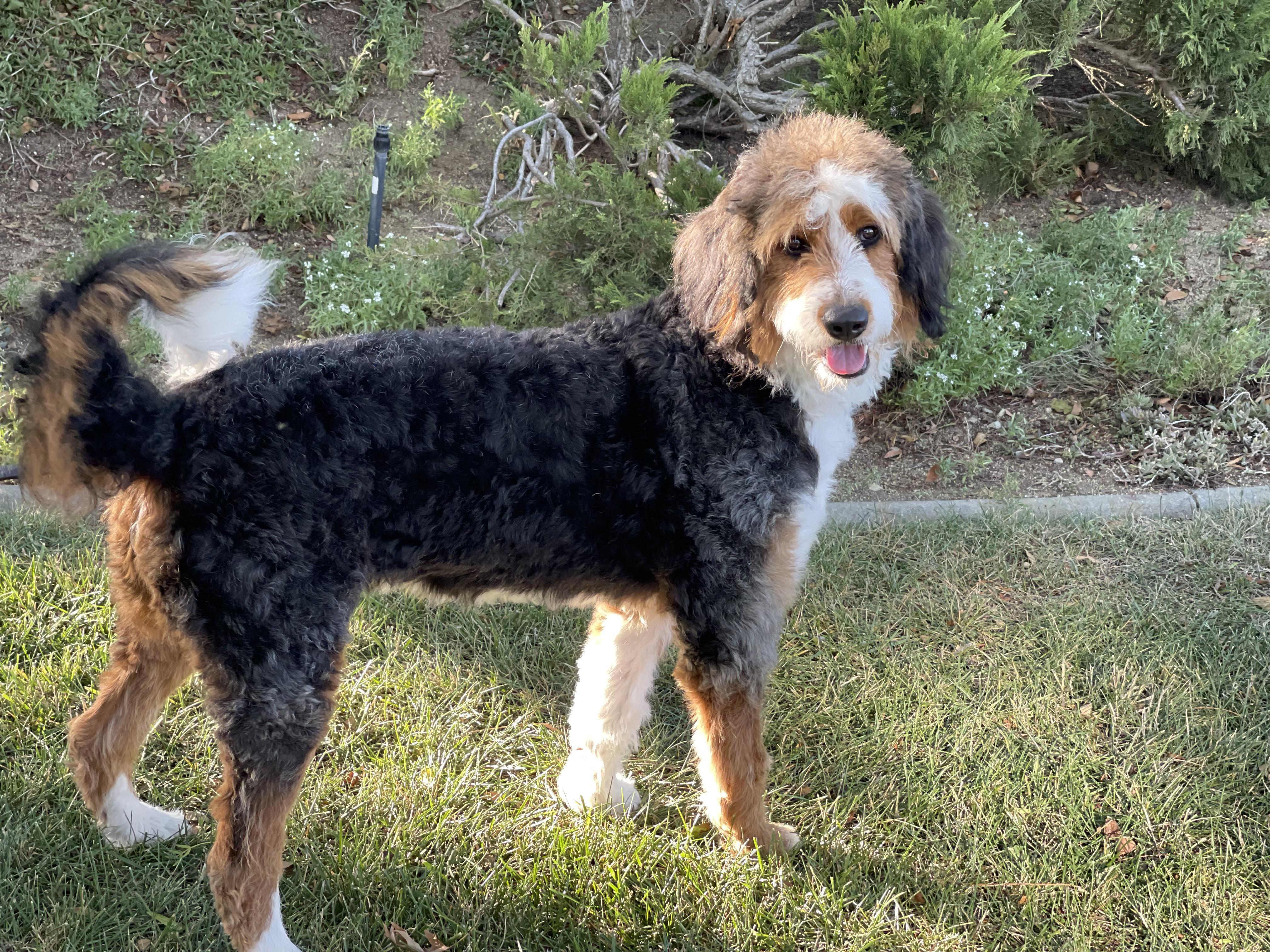 Scarlett is the most laid back calm dog you ever met. She takes after her Bernese Mountain dog parent in body type, color and temperament.