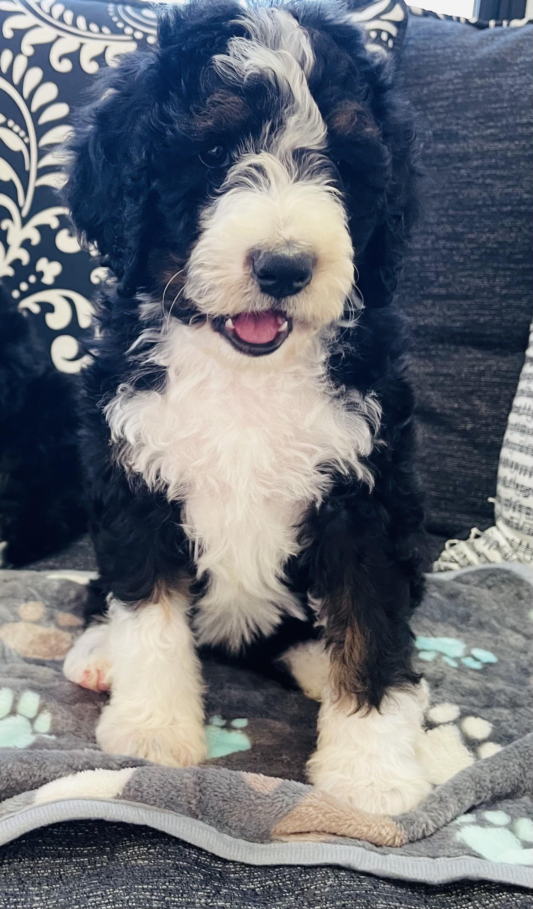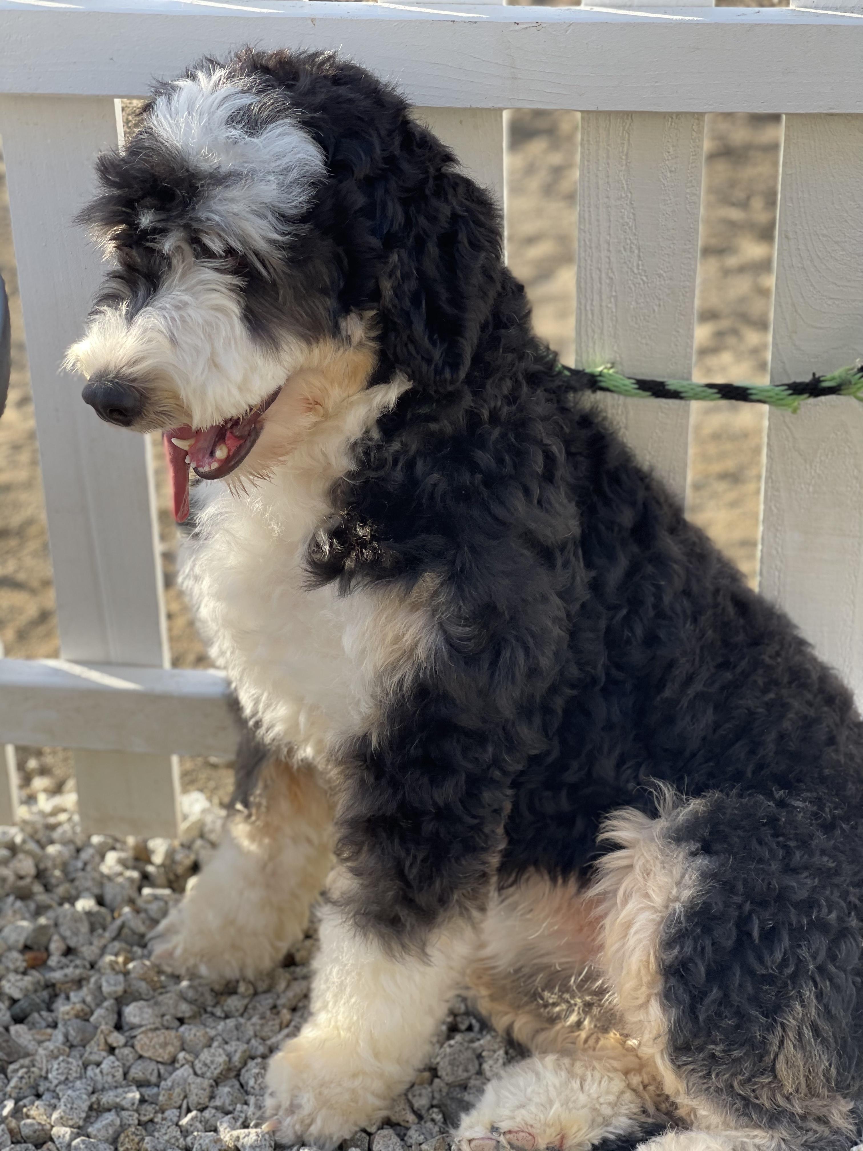 Reef is a male Bernedoodle. Carefully selected as a great representative of his breed, Melinda decided to make him part of their program. Melinda has passed Good Dog’s screening process, which involved a review of their breeding practices, environment, and the mental and physical health of their dogs.