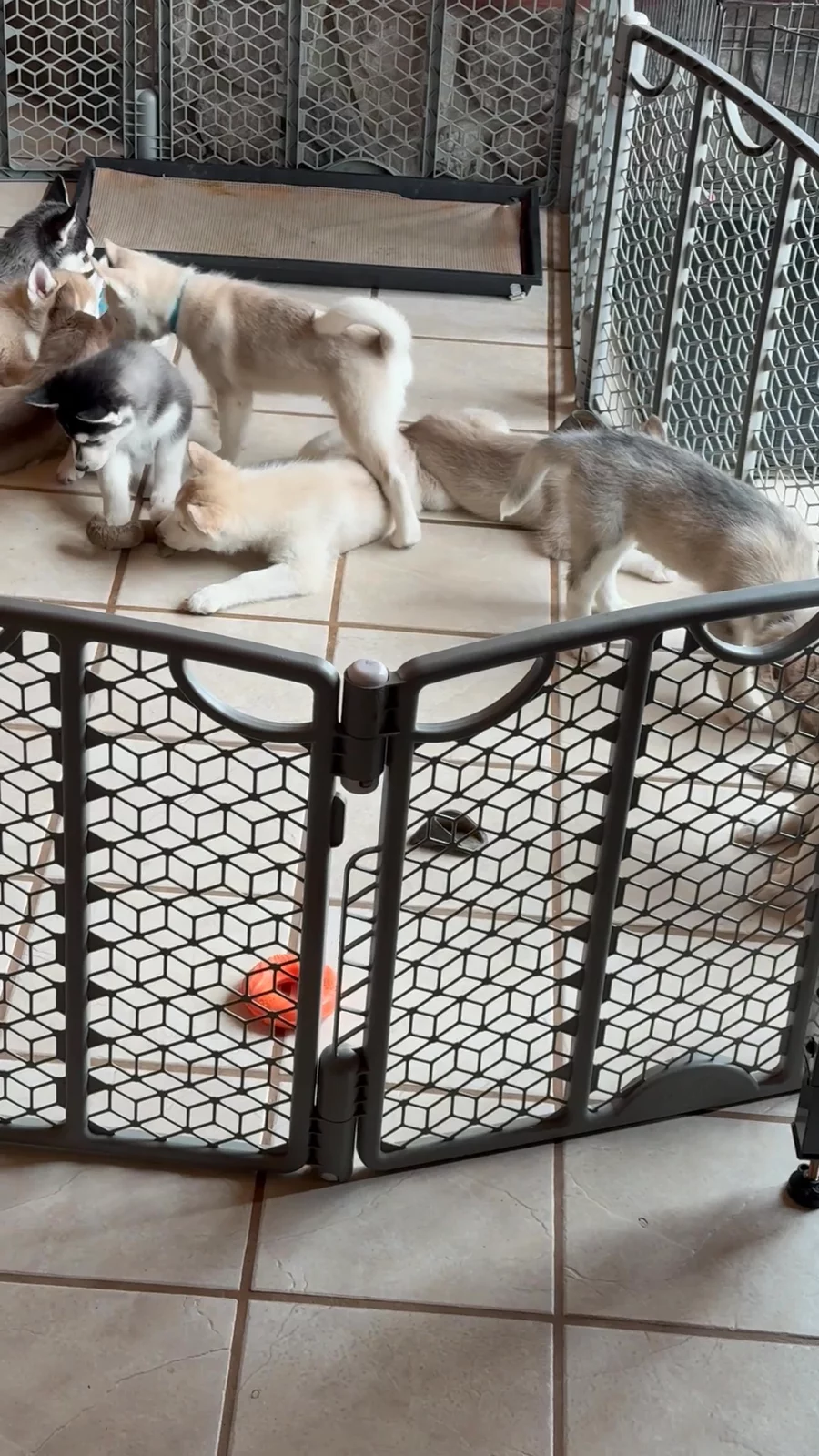 So even though it was a team effort Mishka is officially the first one to escape the play yard. With special acknowledgements to Koda and Kobi for acting as stools and the rest of the litter who all became suspiciously quiet to avoid getting caught. 😆