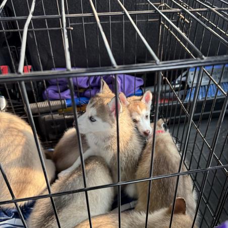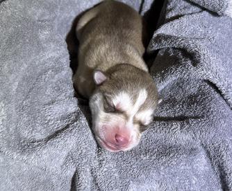 Our Siberian Husky puppies include black tan and white, sable and white, gray and white, and black and white. Pomsky puppies include wolf sable, tri-color, black, black and white, and chocolate. Colors will vary depending on the parent dogs.