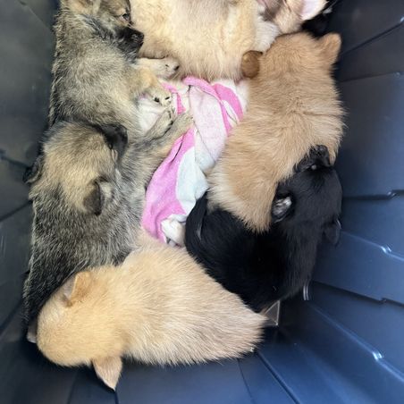 All puppies are happy and healthy! Vaccinated and now just riding out their time til they meet their new humans! Also Vet said (and we agree) they are the best behaved litter they’ve seen, sweet, friendly and well mannered :)