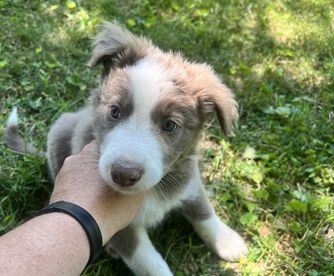 We've been wanting to add a puppy to our family of 2 other border collies and 2 boys (9 and 6) and the gold and white BC has been my dream to own. I researched and found Good Dog to find a trusted breeder which led me to January. She was so responsive (which is huge for me), kind, friendly, knowledgeable and someone who made the process so easy! She kept me posted on questions I had and availability of the puppies I was interested in. She helped guide me through this process and it was so simple. The hardest part was waiting for my puppy! My family member met January to pick up our Meli (new pup). January was very accommodating to the time and local place as well. Fast forward 5 weeks and my pup just received the cleanest bill of health from our vet and the biggest compliments on her temperament. Meli is so beautiful, sweet, playful, silly and smart. WHEN we are ready (not IF) for another pup in the future, we would be over the moon to have another one of January's pups! Thank you so much, January!!!