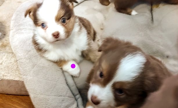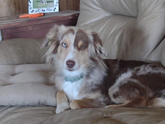 Addie loves to go on long walks and fetch balls! She loves jumping in the pond where we live! She rides very well long distances without being anxious.She loves getting scratches and gets along with all of her family of Aussies. She is a very protective mama and has a loving approach to any strangers that come in my house. She does want to be by my side wherever I am! She is not aggressive unless the first or second day of having her new babies she looks anxious! Her herding instinct is medium. She listens well and has respect for the others when they are eating. She is not aggressive. Her date of birth is October 28th, 2019