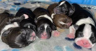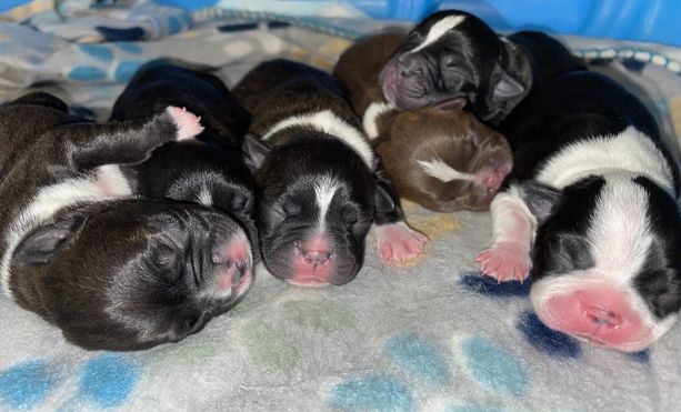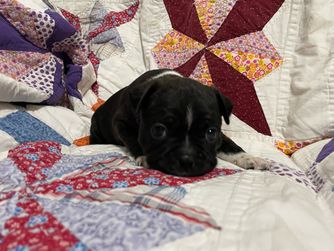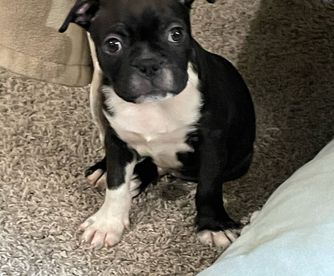 Our puppies are born and raised in our home, not a kennel, or outdoor pen. We take pride in our pups being well adjusted, happy, and healthy. They are around other Bostons, children, and a cat daily. They are let free to run in our living room and play at least 3 times daily, and kept in a 4ftx4ft pen when not able to be let loose.