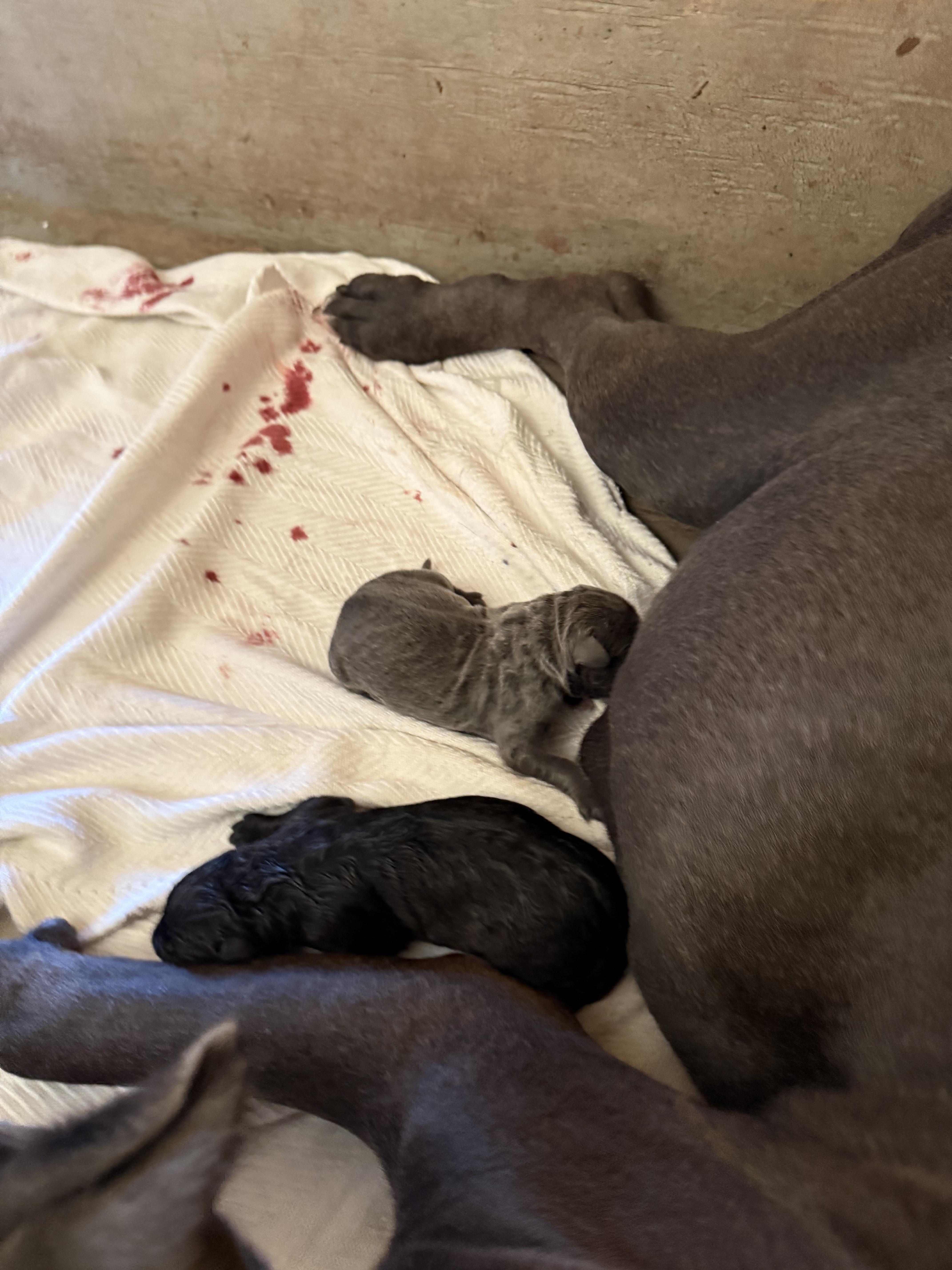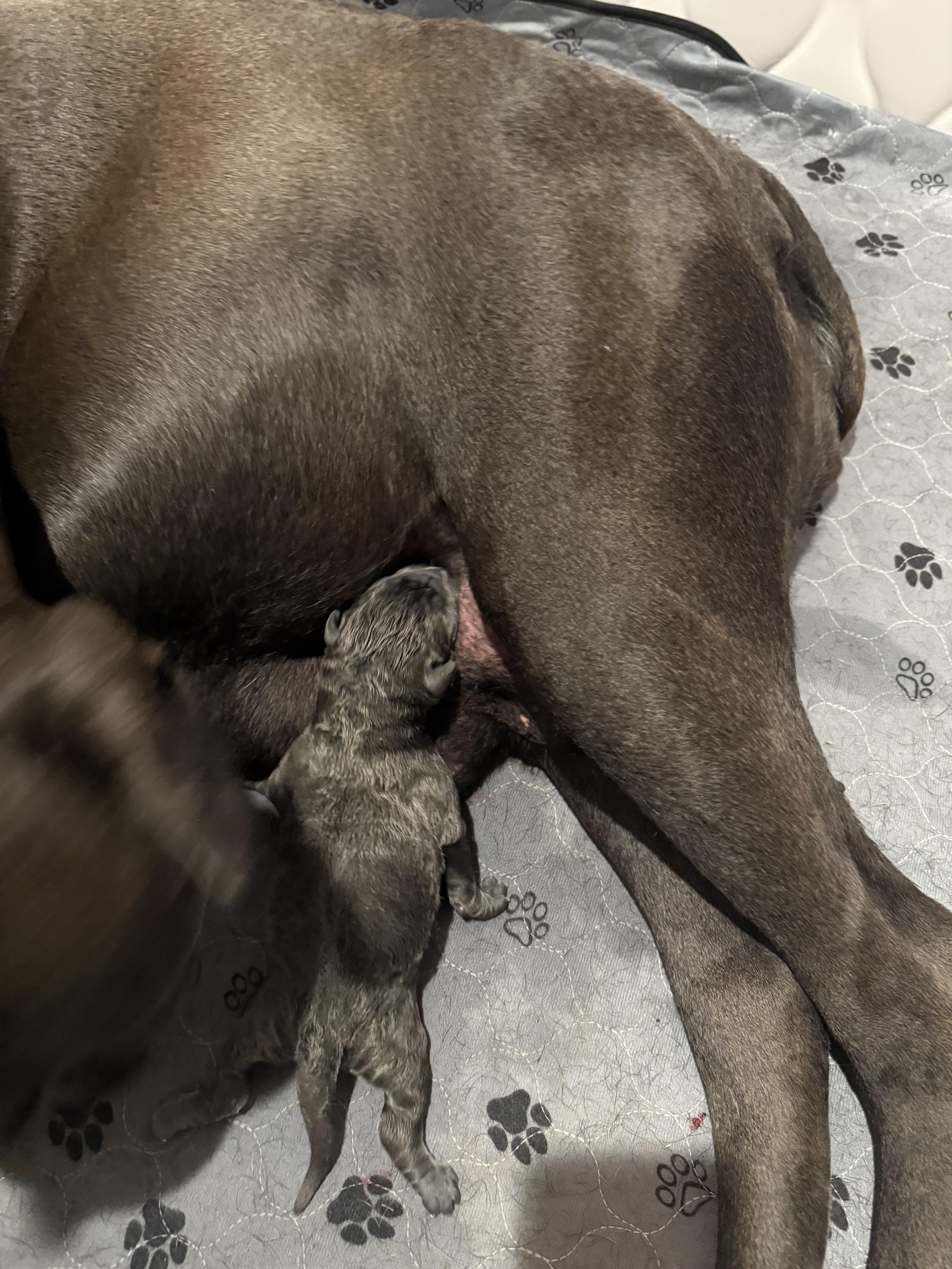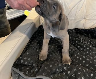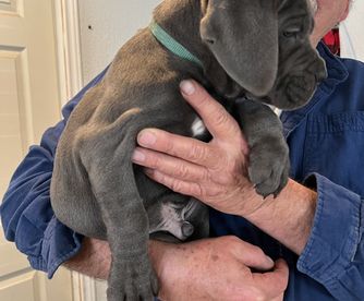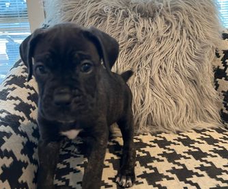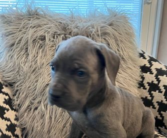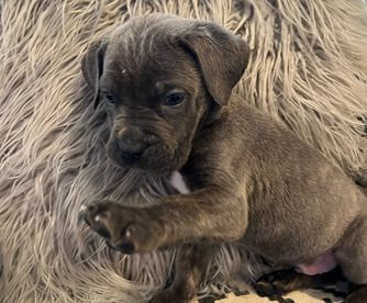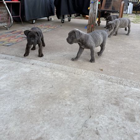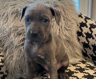 Our puppies include gray and fawn, black, black brindle, gray, and gray brindle. Colors will vary depending on the parent dogs.