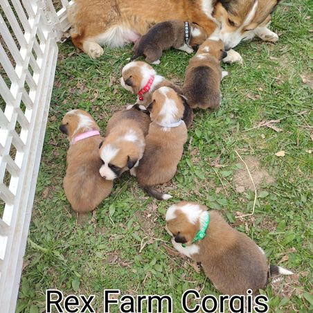 We had an awesome experience getting our Corgi from Jan at Rex Farms. She was very responsive to all of my questions and concerns. We received a bag of a lot of essentials after picking up our puppy. We couldn't have been more happy with our new puppy, and working with Jan. If you're looking for a Corgi I highly recommend Rex Farms!