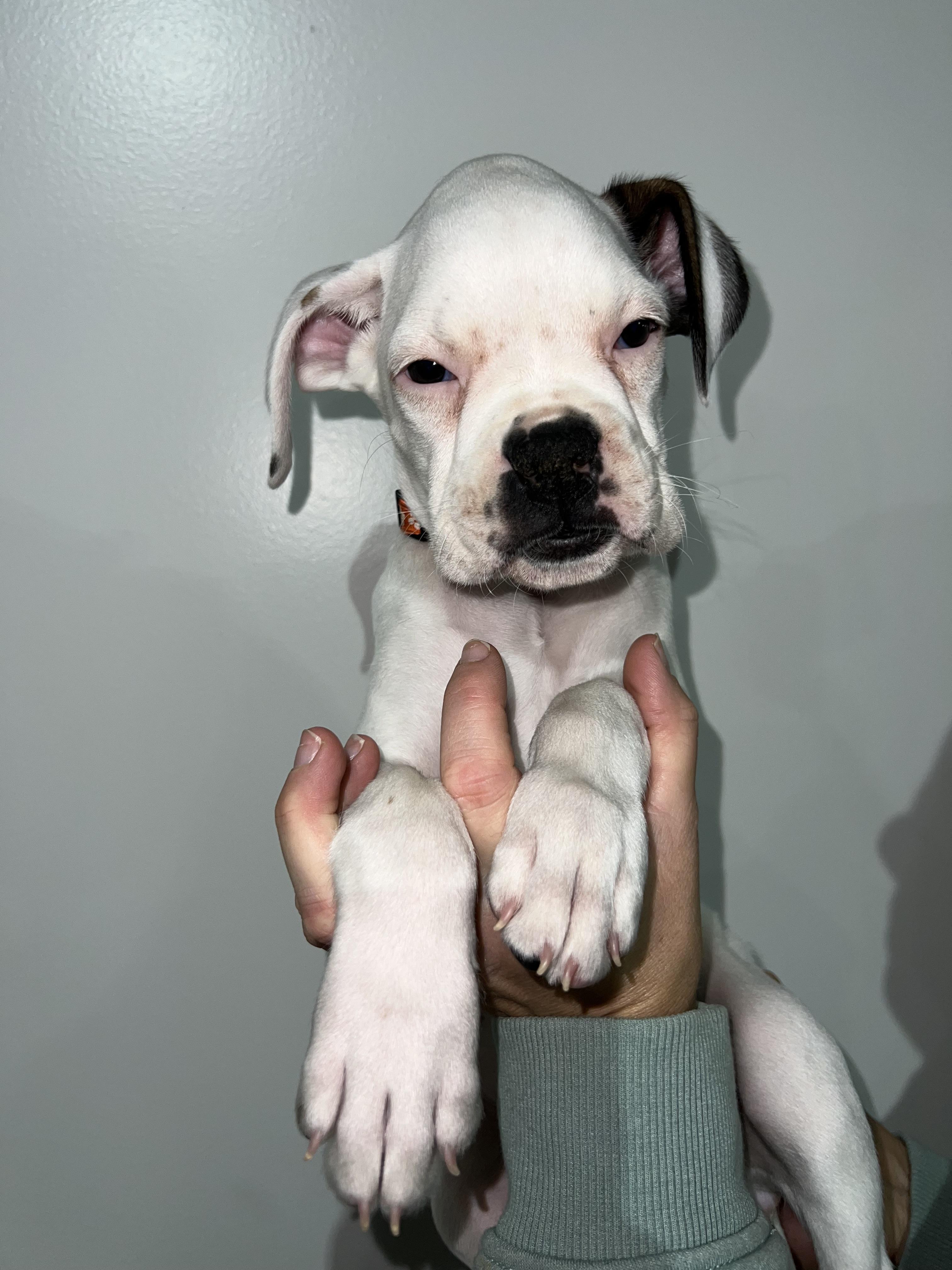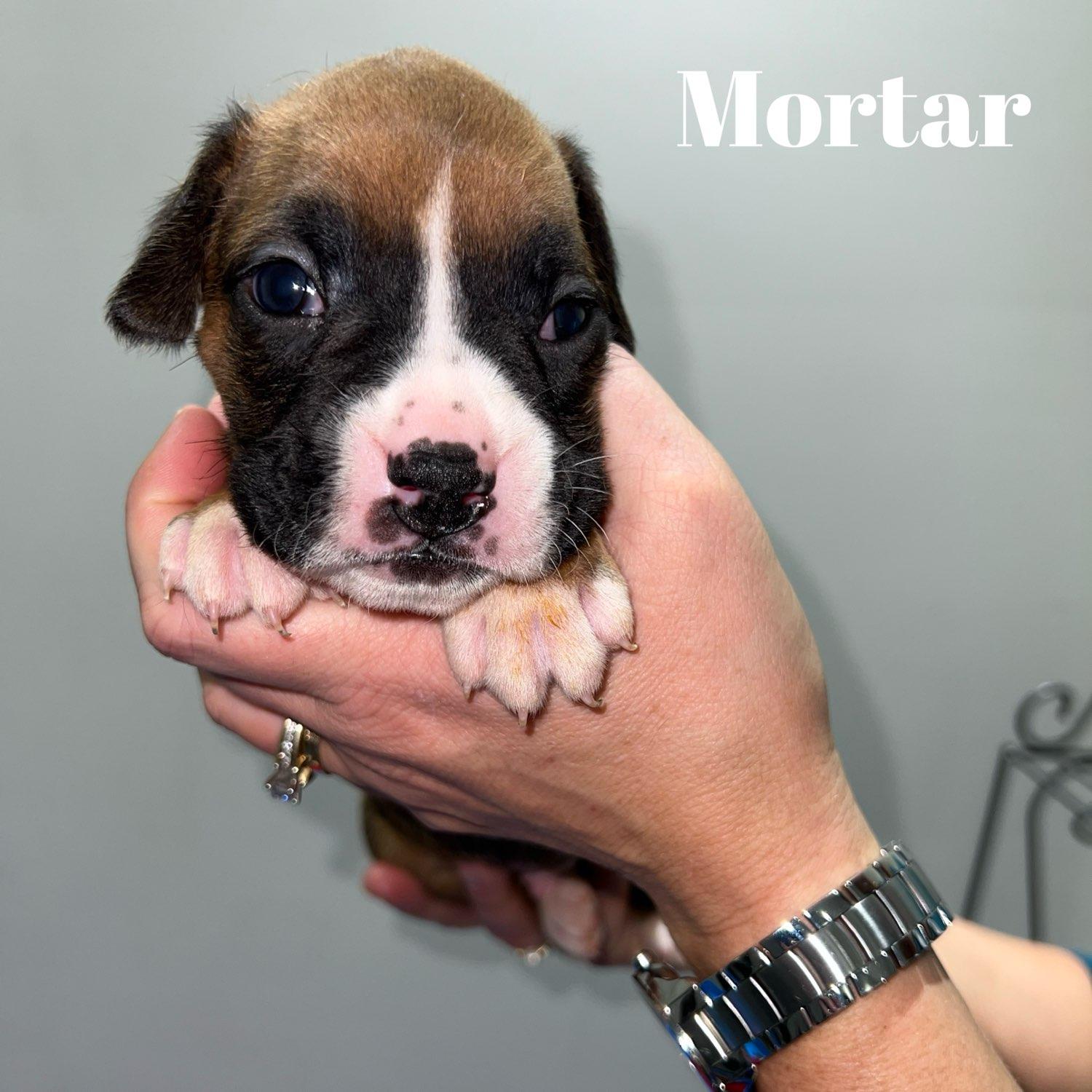 Our puppies include fawn, brindle, and white. Colors will vary depending on the parent dogs.