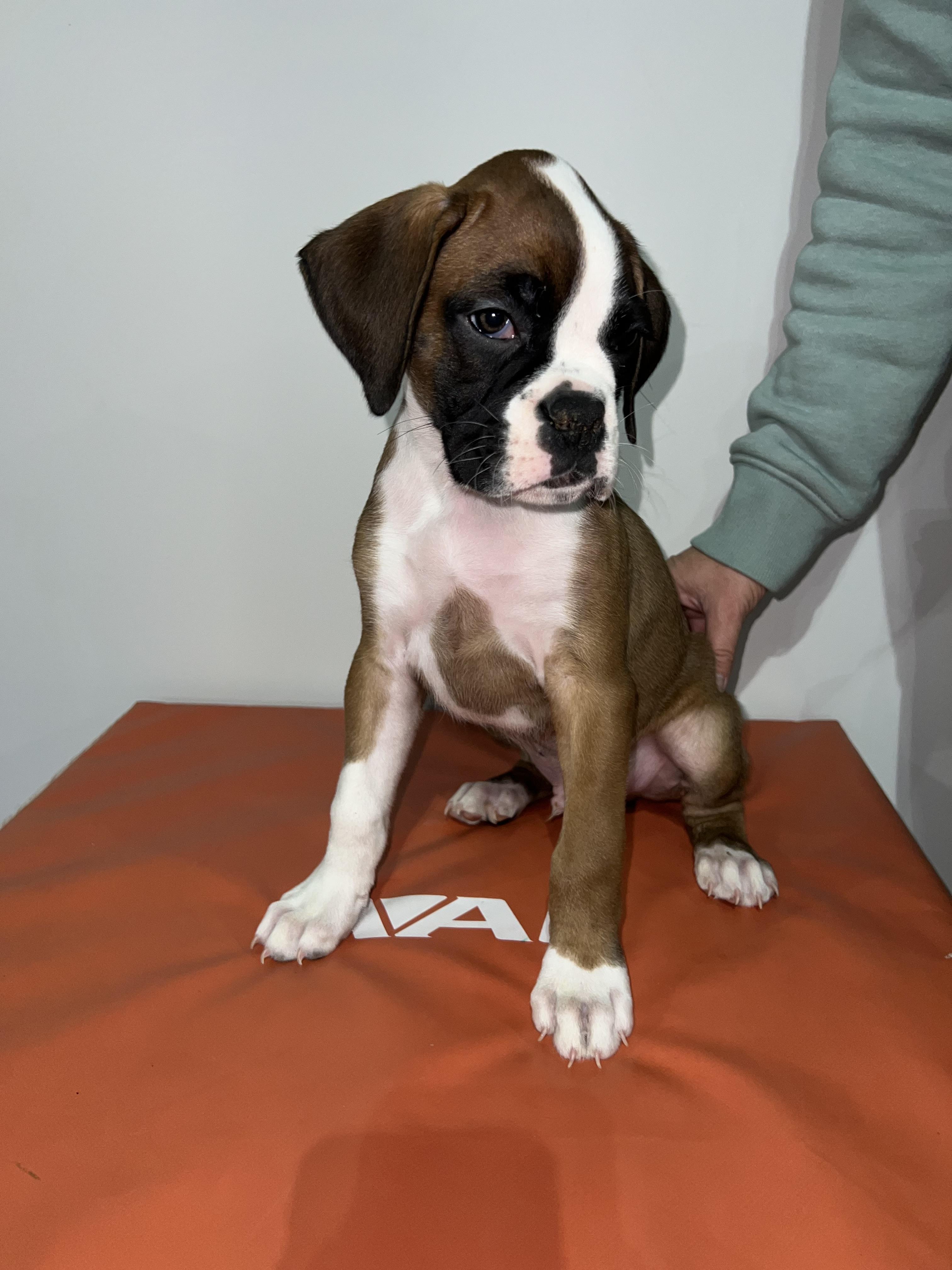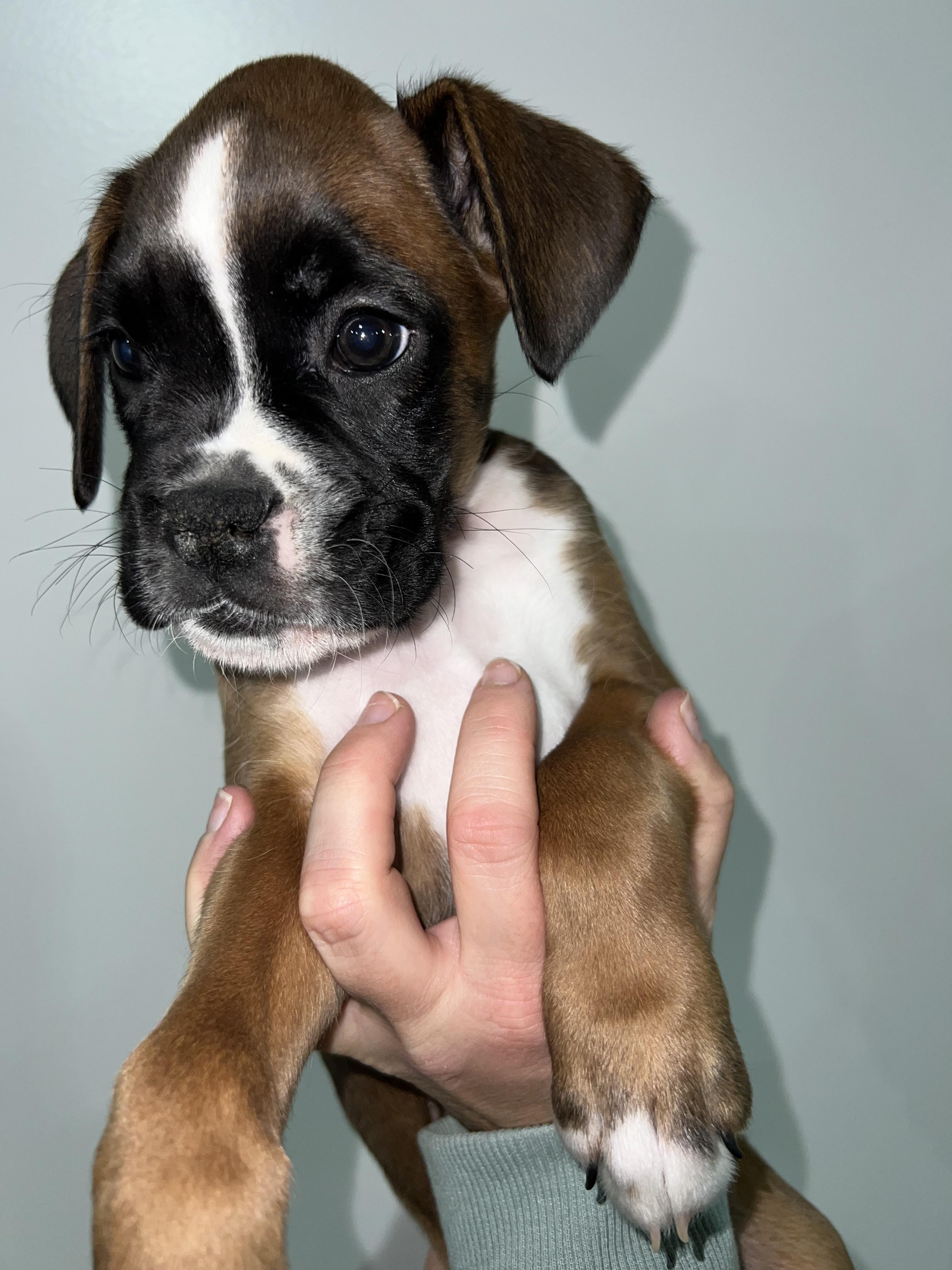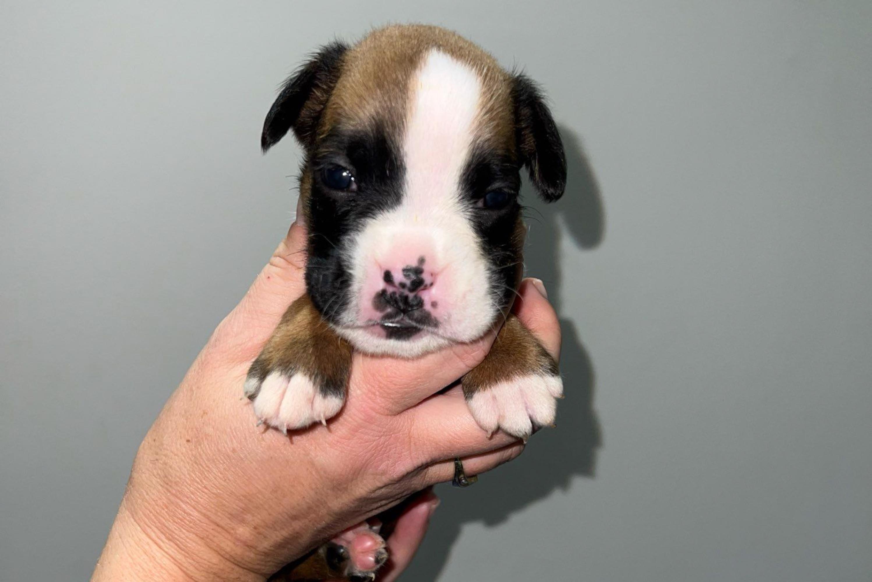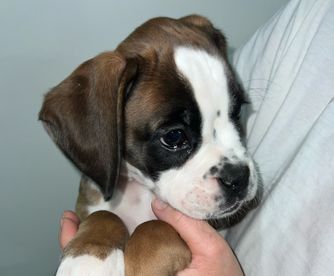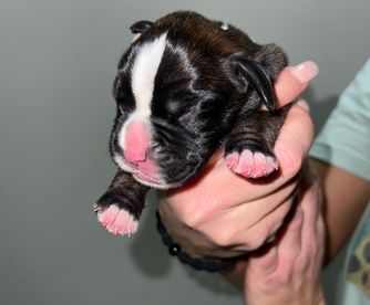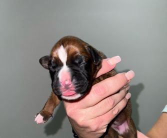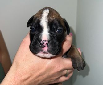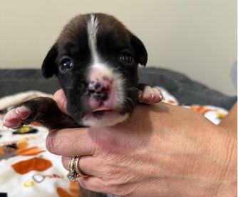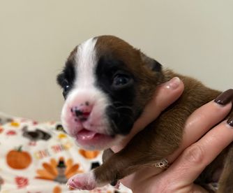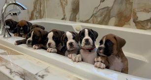 I'm Nicole R., the breeder behind Reynolds Homestead Boxers located in Jamesville, NY. Puppies are born in our home. They are monitored closely and have grown up hearing normal household noises. Learn to potty train on newspaper at 4 weeks. Puppies are well socialized, loved, hugged on and pre-spoiled by children and adults before going to their new home. All of our boxers are family pets. AKC registered, microchipped, tails docked, dewclaws removed, 1st shots, dewormed and raised with both parents on premises. Families will get a folder with pertinent information on the puppies - vet reports, vaccination record, AKC paperwork and registration as well as informative brochures and pamphlets.