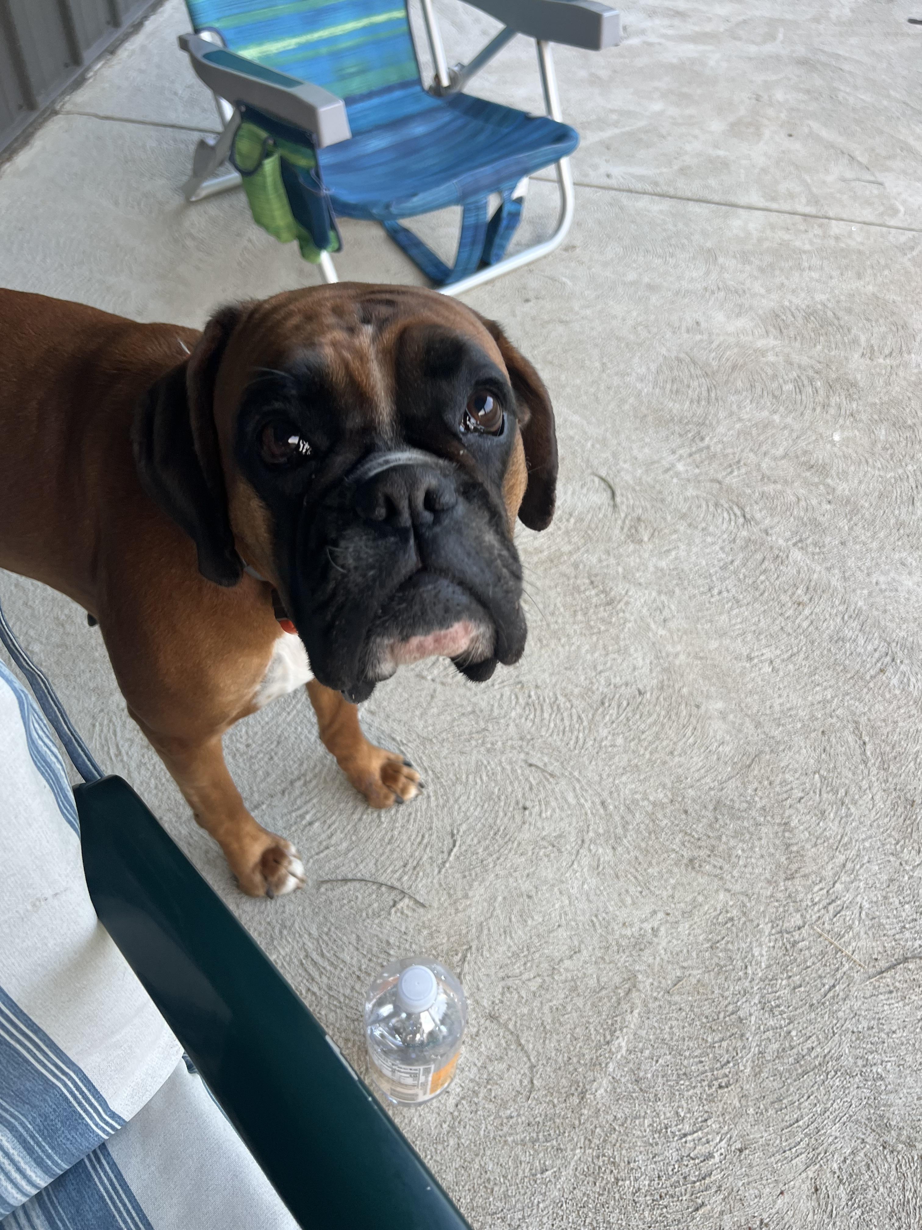 Chevy is a male Boxer. Carefully selected as a great representative of his breed, Nicole decided to make him part of their program. Nicole has passed Good Dog’s screening process, which involved a review of their breeding practices, environment, and the mental and physical health of their dogs.