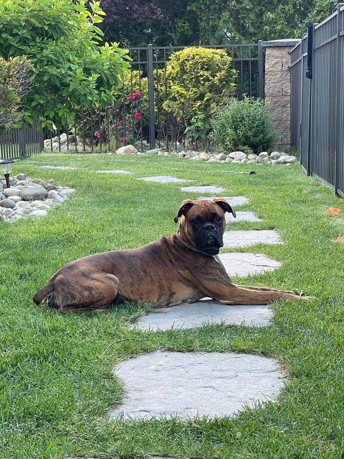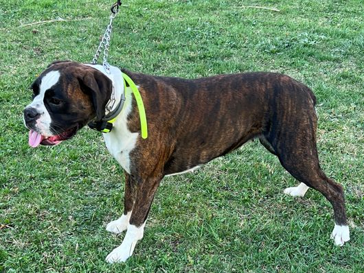 Paisly is a female Boxer almost 6 years old. Carefully selected as a great representative of her breed, Nicole decided to make her part of their program. Nicole has passed Good Dog’s screening process, which involved a review of their breeding practices, environment, and the mental and physical health of their dogs.