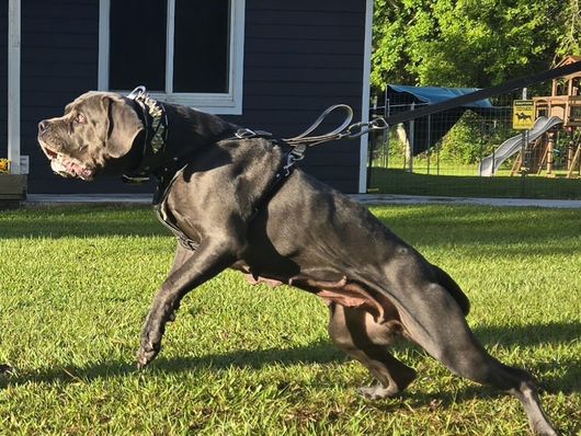 Justice is a male Cane Corso. Carefully selected as a great representative of his breed, Casey decided to make him part of their program. Casey has passed Good Dog’s screening process, which involved a review of their breeding practices, environment, and the mental and physical health of their dogs.
