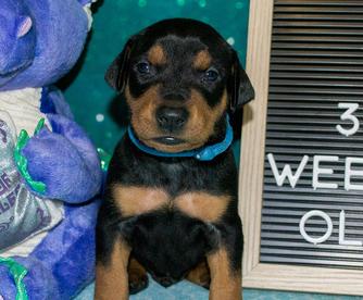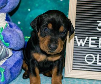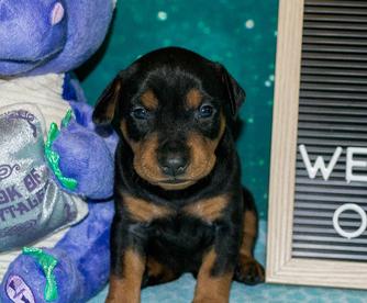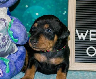 I'm Jessica S., the breeder behind Rhapsody German Pinschers located in Topeka, KS. Our goal is to produce beautiful German Pinschers with correct temperament, good health, and able and willing to do any work asked of them. We spend a tremendous amount of time raising each litter to be the best it can be, focusing on nutrition, genetics, and science-backed enrichment programs.