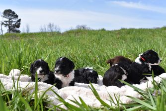 Our puppies include black and white, black tri-color, and red tri-color. Colors will vary depending on the parent dogs.