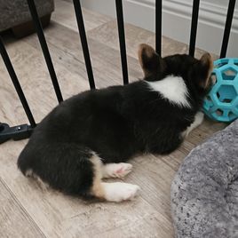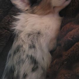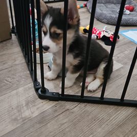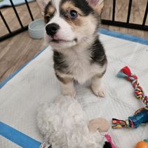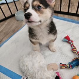 My experience working with Hannah was pretty good. It was very easy, and I think her dogs are gorgeous. I wanted a cuddley puppy and was given a cuddley puppy. I've only had her half a day, but she has warmed up quicker than my other corgis that I purchased from other breeders. My little poofball is so sweet, and I just love her. The only bad part is....I swore I would tap out at three dogs and I feel like I'm going to be back for a fourth. I'm fighting it. I'm trying to be good.