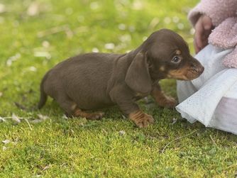 Dachshund puppies are miniature size. Sizes will vary depending on the parent dogs.