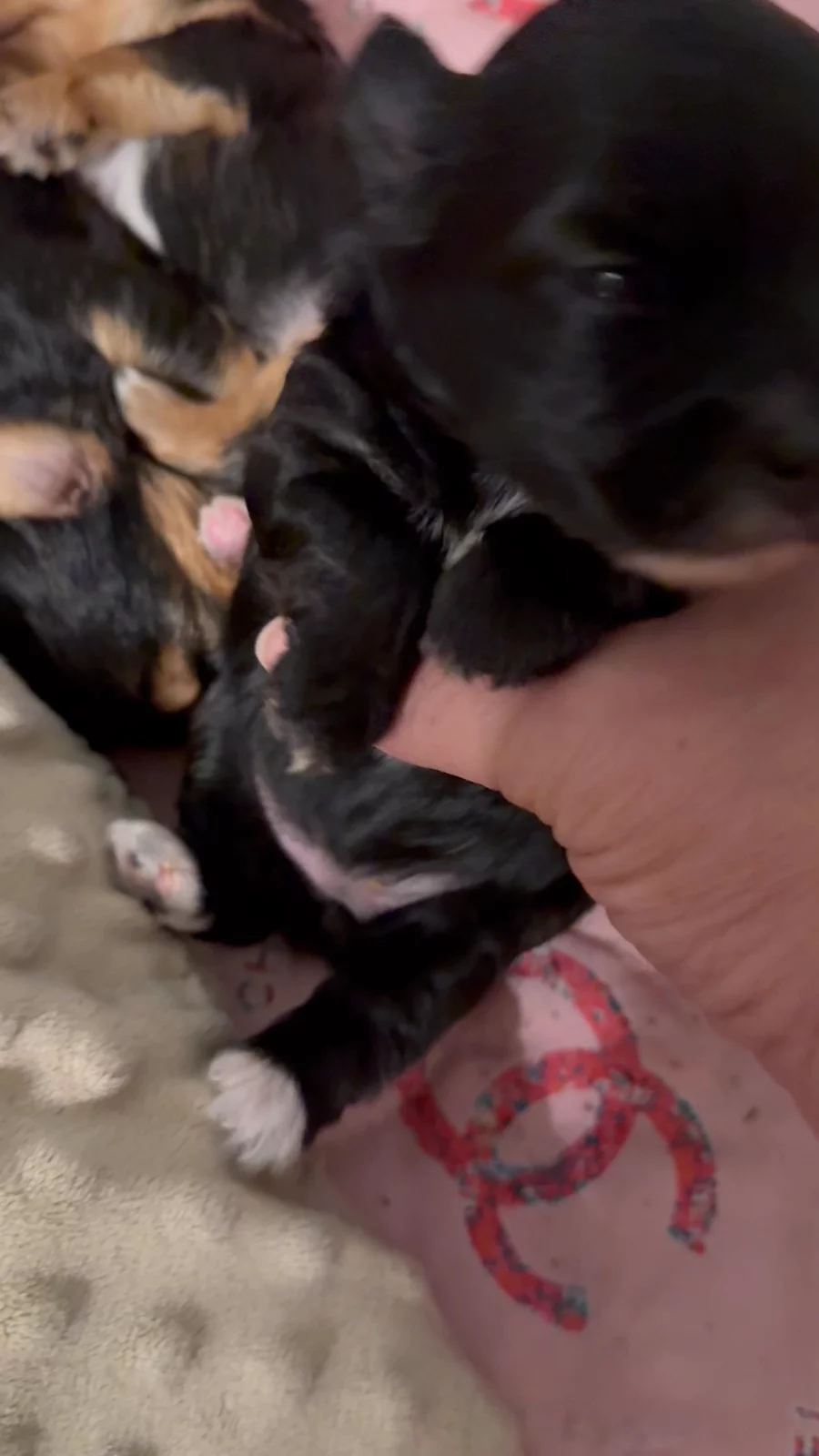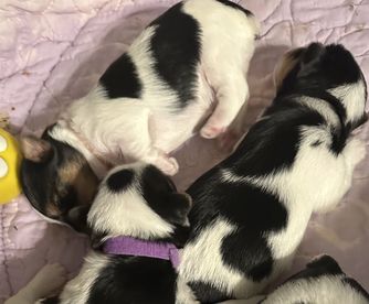 Our puppies include chocolate, tan and white, chocolate and tan, parti, and black and tan. Colors will vary depending on the parent dogs.