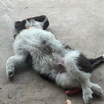 Luna is a Black and White Landseer, she weighs 140lbs. Luna has a very mellow temperament, she is fantastic with children and other animals. She loves playing in the pool and sprinklers, and digging in the sandbox.