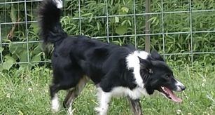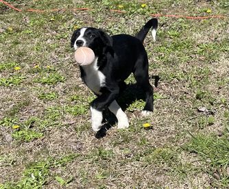 Bailey is a cute black and white female border collie with a high herding drive and instinct. She has been started on livestock and is registered with the American Border Collie Association. Bailey has been health tested and is genetically clear.