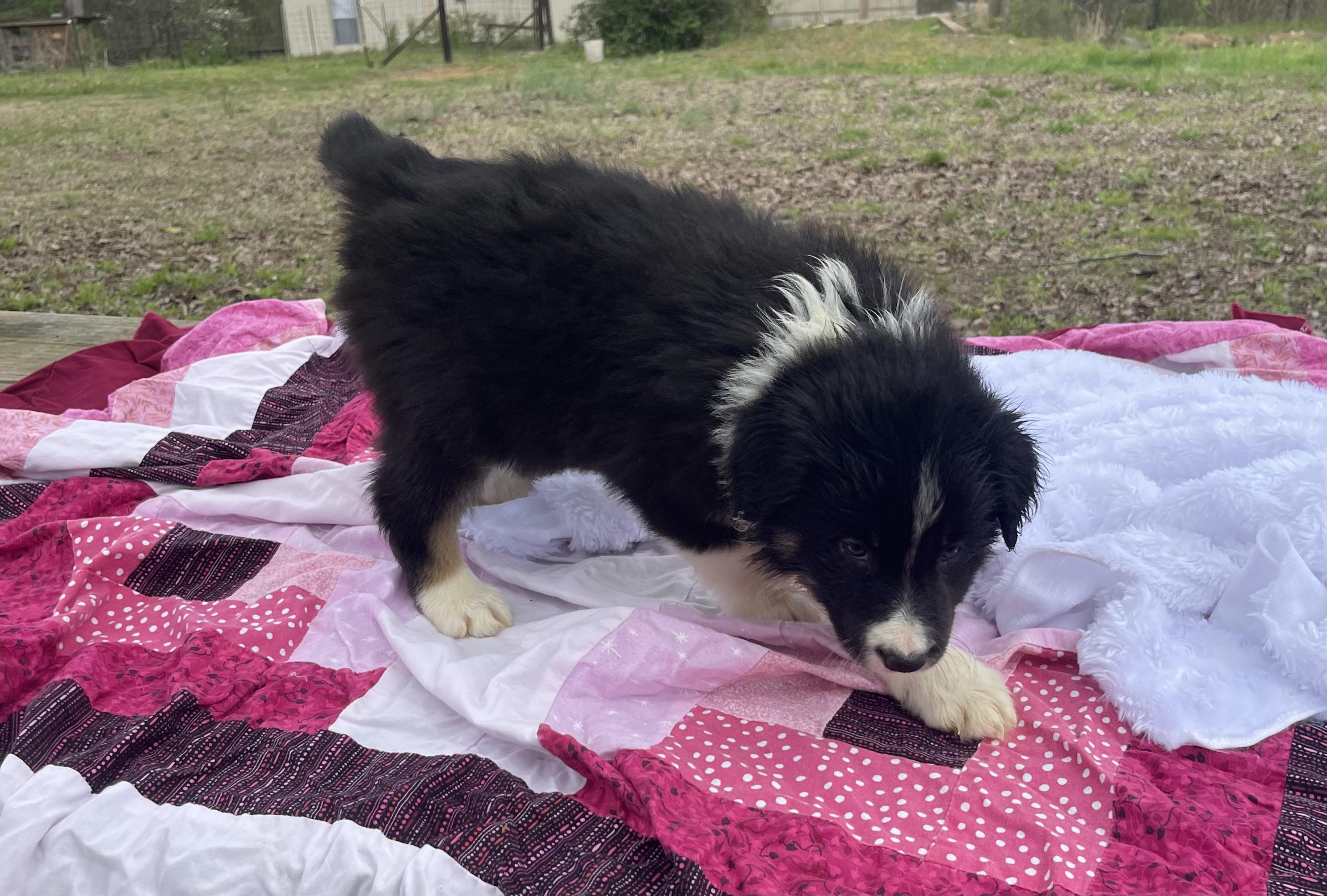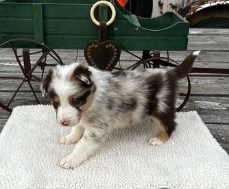 Our puppies include tri-color, blue merle, red merle, and white and red. Colors will vary depending on the parent dogs.