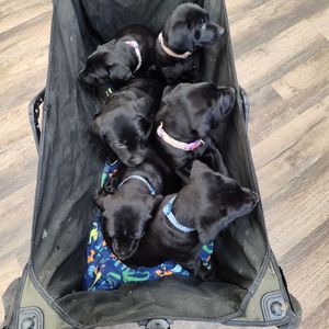Our puppies include black, chocolate, and yellow. Colors will vary depending on the parent dogs.