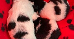 Our puppies are black and white. Colors will vary depending on the parent dogs.