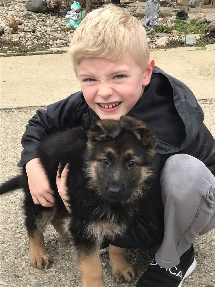 I'm Tara R., the breeder behind Riehlhaus German Shepherds located in Shandon, OH. We raise our puppies in our home, they are part of our family. Our adult dogs and puppies are loved, played with, taken for walks at the park for socializing, or just a stroll back through our fields and woods. They are trained and worked with each and every day. Our dogs live in our house they are not kept in kennels outside with the farm animals.