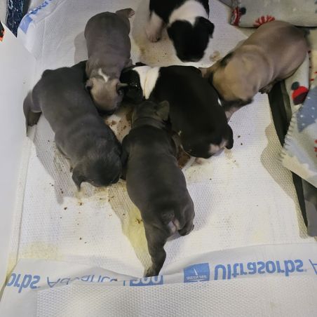 Our French Bulldog puppies include fawn, blue fawn, and black and tan. Mastiff puppies are fawn. Colors will vary depending on the parent dogs.