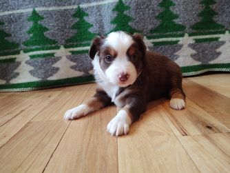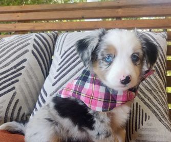 Our puppies are blue merle. Colors will vary depending on the parent dogs.