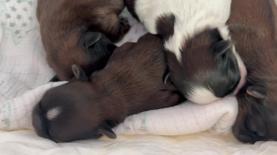 Our puppies include tricolor, chocolate, black, liver, black gold and white, liver and white, and black and white. Colors will vary depending on the parent dogs.