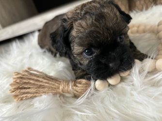 My Husband and I work daily with each puppy making sure they are all meeting developmental milestones. Puppies are pad trained and will be introduced to a recall. We have created a puppy playground with various toys and obstacles to help puppies learn and thrive. Our puppies are loved and treated just like family.