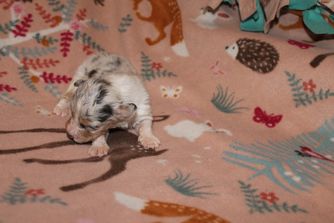 Our puppies include black, red merle, blue merle, and red. Colors will vary depending on the parent dogs.