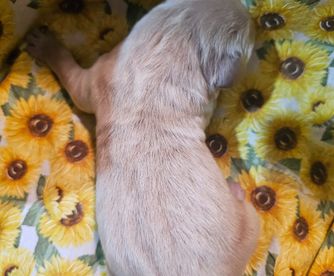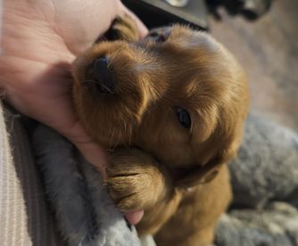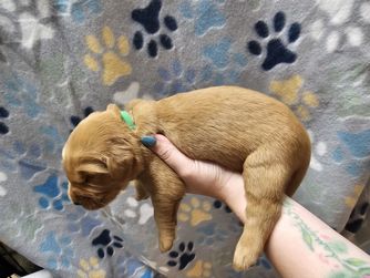 We just love our little golden nugget! He is absolutely precious and SO smart! We are so blessed to have found this breeder. Samantha communicated with me often. She sent videos and pictures to let me see how my little guy was doing before we were able to pick him up. She also met me half way, which I appreciated. I couldn’t have asked for a smoother experience. Thank you so much! We just love our little Henry and he is doing so good!