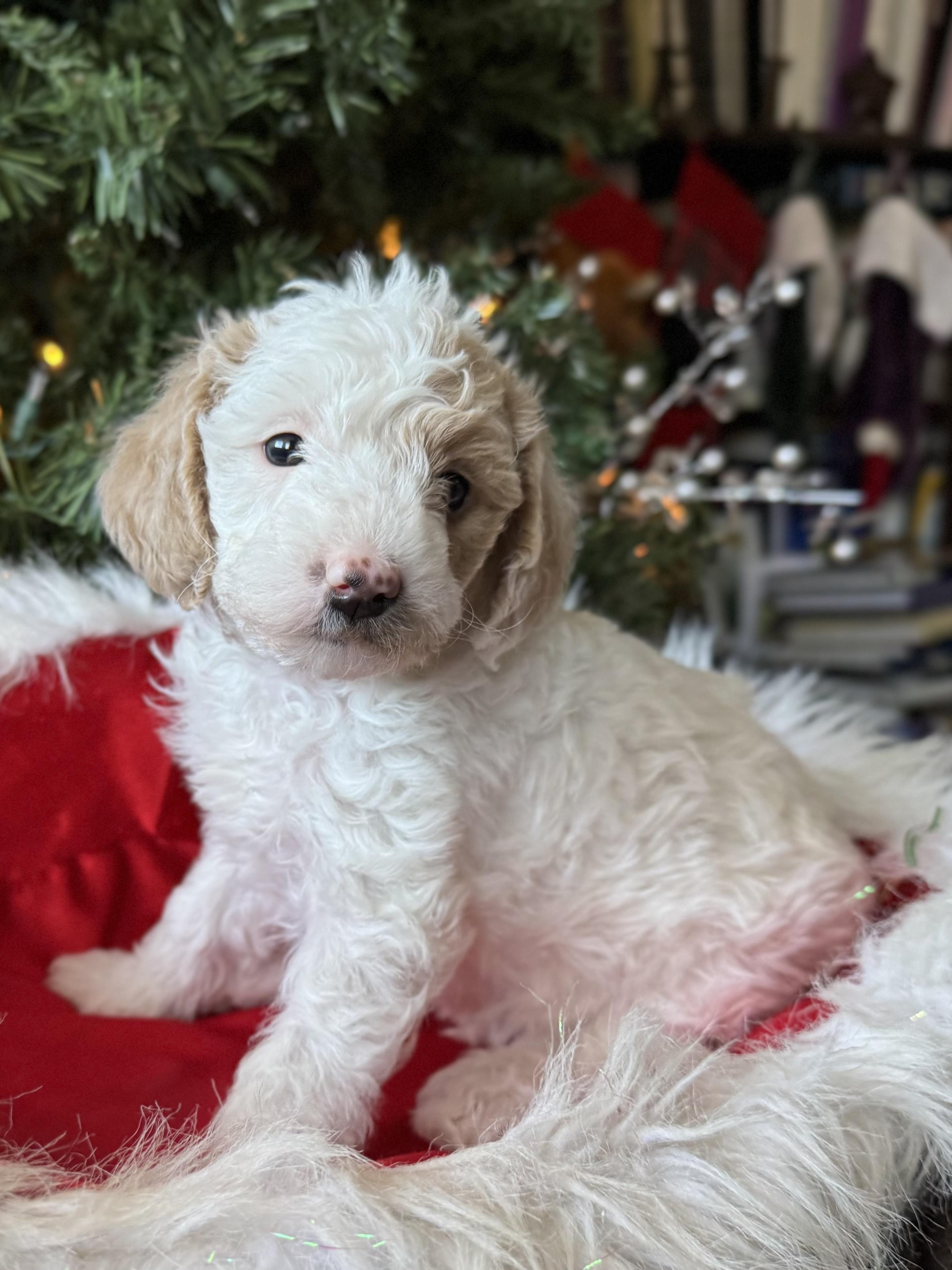 Sky is daughter of our AKC Black Labrador mother and our friend's AKC White Parti Poodle father. She is so smart, playful, and wonderful with our children. She is my wife's hiking buddy and never tires and always up for adventure.