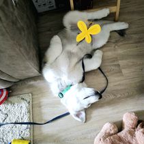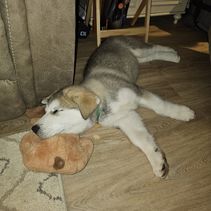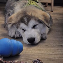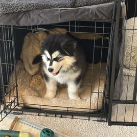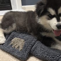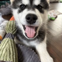Our experience with River Bend Malamutes was wonderful! Brenda herself was lovely— she maintained friendly and thorough communication throughout the entire process, welcoming as many questions as we needed to ask, and sharing all sorts of professional advice and personal stories about her own dogs to help guide our decision. She also updated her listings regularly, making it easy to see how the puppies were growing until they were ready to go home. On pick-up day, she had all the paperwork organized and ready to go, took the time to review all the information contained in said paperwork, and even sent us home with a (large!) goody bag stocked with everything from toys and treats, to samples of the food she had been feeding, to a blanket used by the litter and mama dog so our boy had a memento from his early days! She and her family had even been calling our baby by the name we had picked out, in order to get him used to hearing it. Our pup came to us in great shape! He was healthy and happy, and has adjusted to his new environment very quickly! I would buy another Mal puppy from River Bend in a heartbeat!