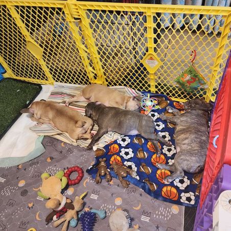 I got into breeding over 10 years ago with English Mastiffs. We had champion show dogs. But as life is we are getting older and the big dogs are hard to handle when you have more than a couple. So we went with our other favorite the frenchie! All personality in small compact bodies. They are great family dogs and they keep us so entertained!