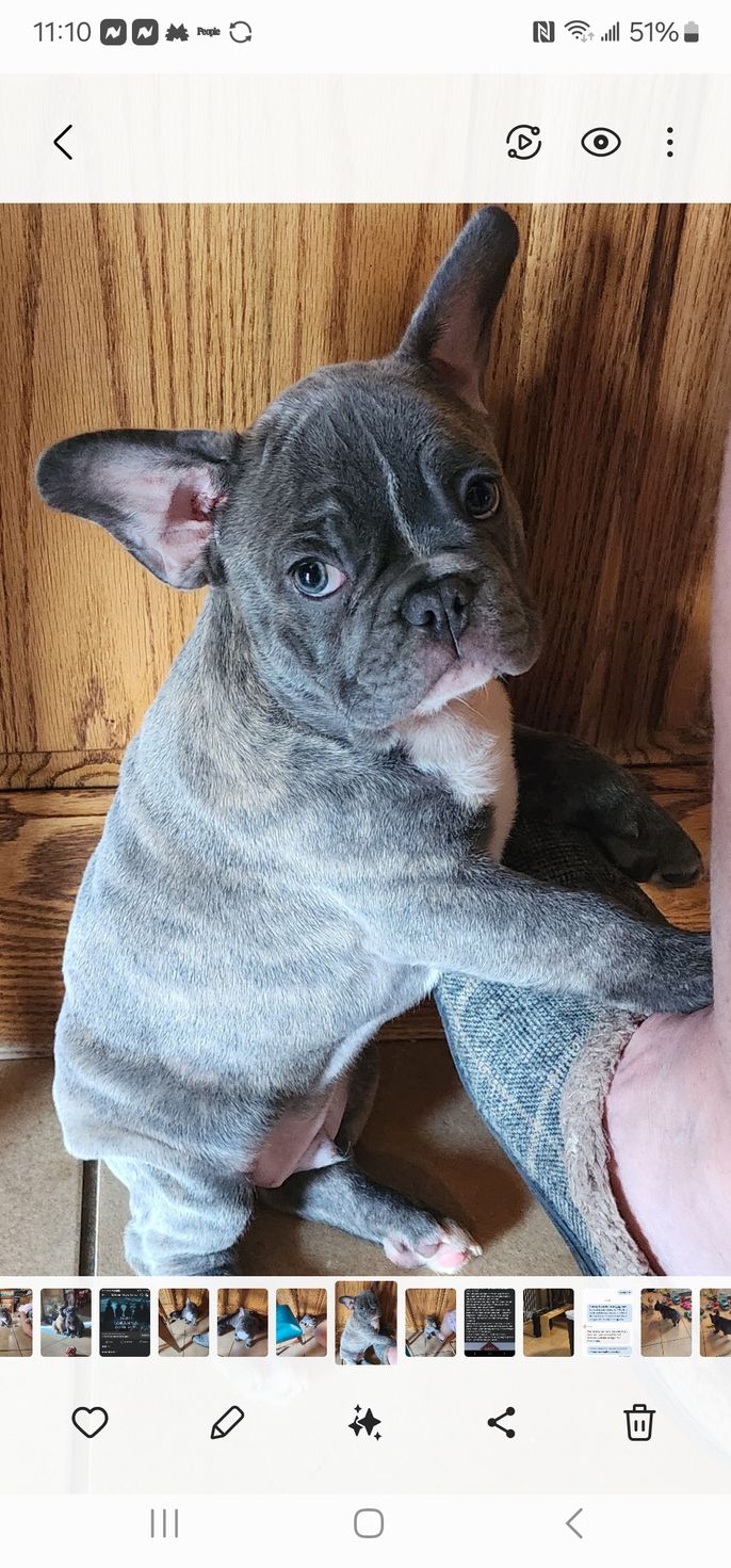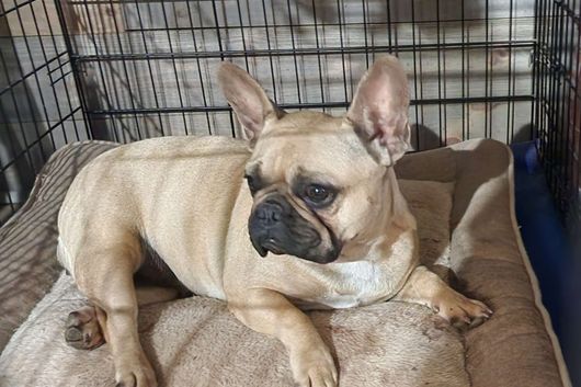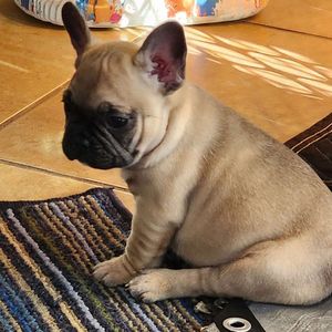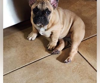 Hazel is a fun loving frenchie! Loves her chew toys. Gentle Loving temperament. She loves her humans and loves to go by-by
