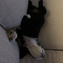 Sassy is as sweet as they come. She loves to be outside and run on our 6 acres and would make a great agility dog. She enjoys the hiking trails and trying to catch squirrels and birds. In the evening she loves her belly rubs and likes to snuggle next to my husband.