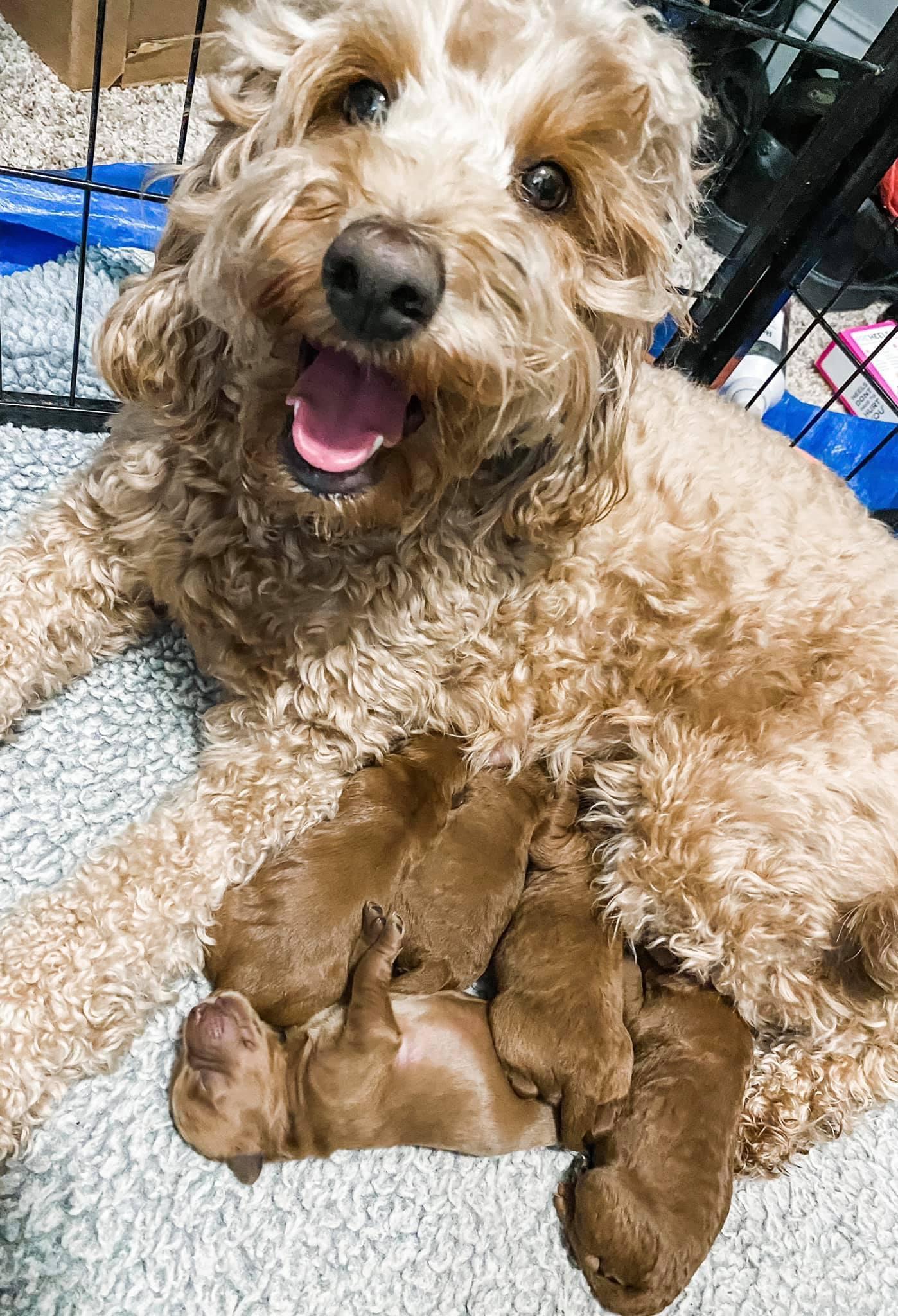 Our puppies include cream, apricot, red, chocolate, black, and parti. Colors will vary depending on the parent dogs.