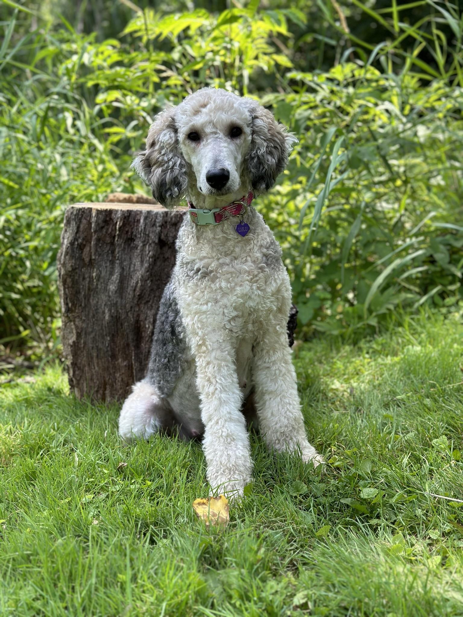 I would highly recommend Ryan with River Park Poodles! Our 2yr old moyen poodle is a great size, not too big and not too small. He weighs about 28lbs. We free feed, and he has self regulated his weight to a perfect size. I really appreciated Ryan sending me additional photos when I was trying to decide whether a moyen was the right size for our family. Our boy Murray is very loving but also playful! He loves to sit on our laps - he's just a big baby! We also hold him in our arms. He really loves to snuggle and play ball. Ryan has been great to answer questions along the way. He has offered suggestions and has always been quick to respond to my questions. Murray was well sensitized when we got him. It was an easy transition when we brought him home. Ryan had already taught Murray how to sit when we got him ;). I wish we lived closer to Ryan, as I would have loved to have him do some additional training with Murray. From the beginning, it was obvious that Ryan loves dogs! I would not hesitate purchasing another poodle from River Park Poodles!