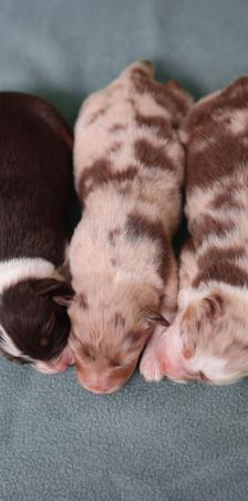 “Our pups come with AKC (or ASCA) registration, vet checked with age appropriate vaccinations, dewormed regularly, take home bag with lots of goodies, lifetime breeder support, and a health guarantee! Non refundable but can be rolled to a future litter.”