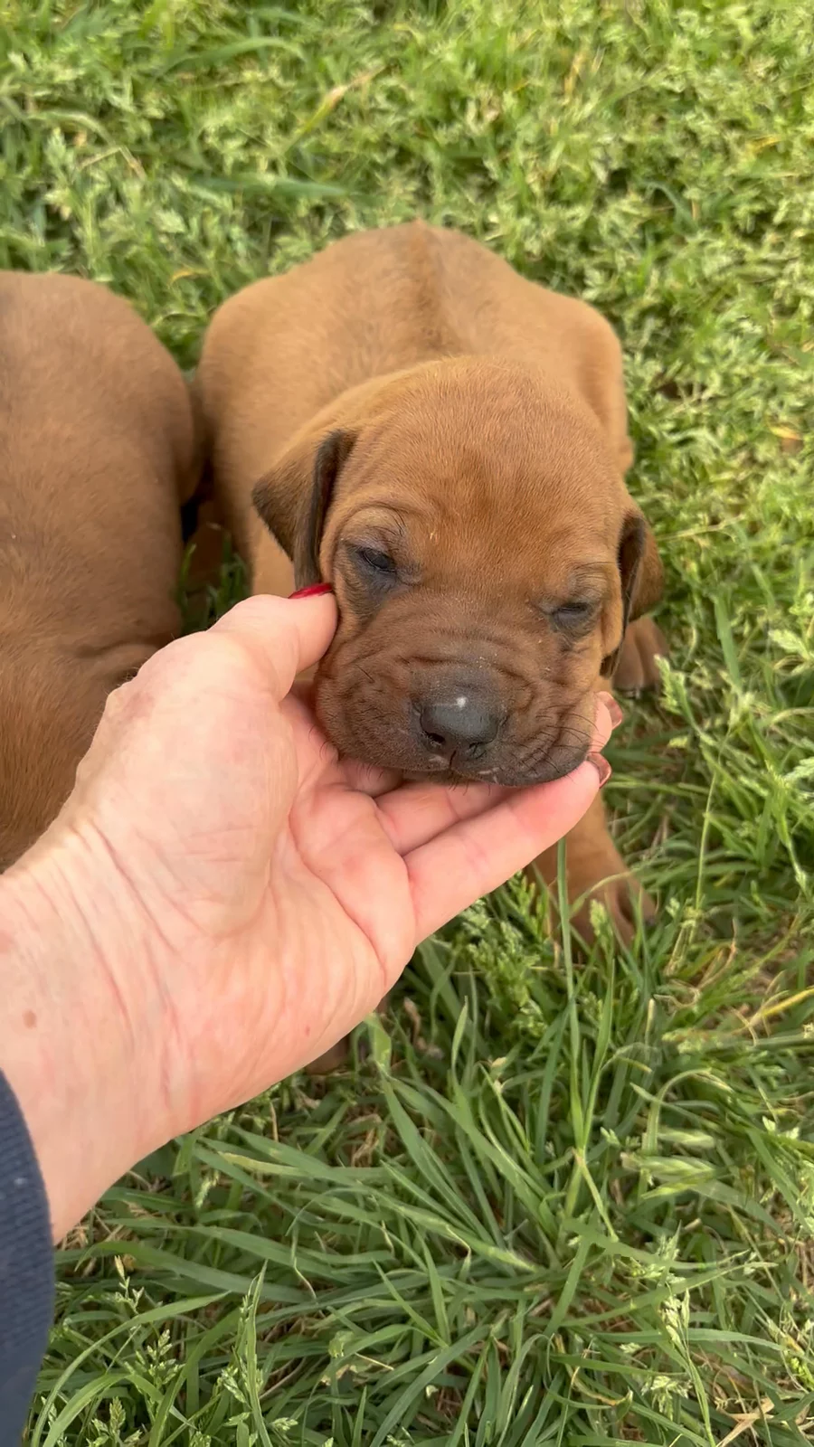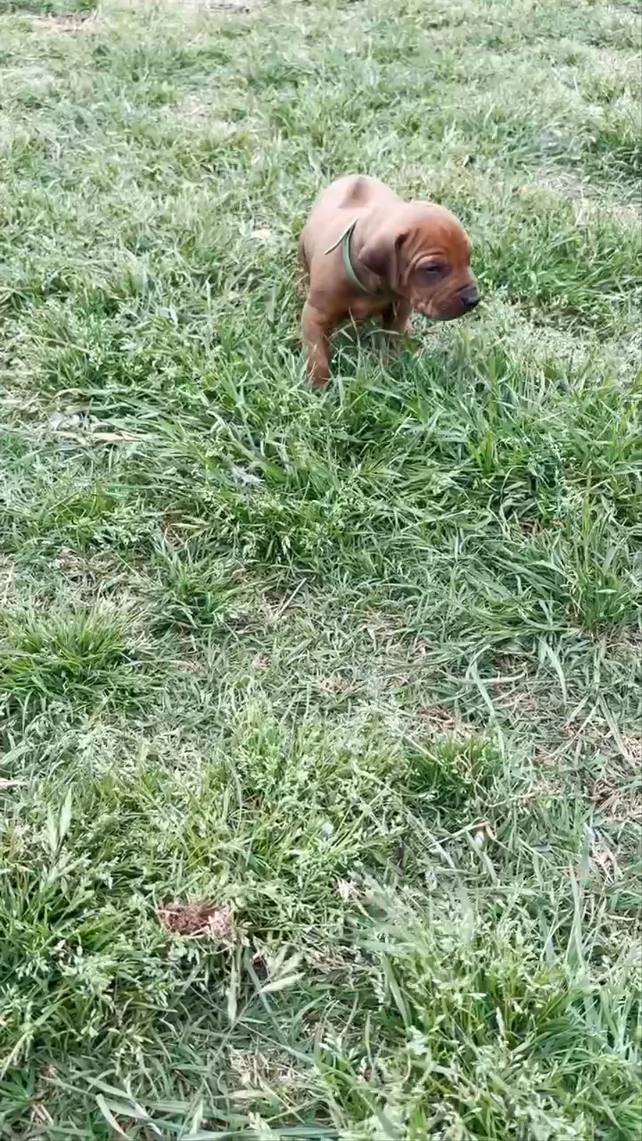 Linda was flexible and worked with our pickup schedule, and Tank immediately showed a connection to her at that time. He was clean, well cared for, and ready to travel home, and Linda thoughtfully prepared a go bag to help make his transition to our home easier. She also provided a contract stating that if we were ever unable to care for Tank, he would be returned to her, which demonstrated her commitment to his well-being. Since coming home, Tank has been all puppy, but we are impressed by how smart and intuitive he is. He learns routines quickly and was already house trained when we got him—any accidents were due to us not recognizing his cues. Tank shows a natural instinct to care for others, such as positioning himself on the stairs to prevent our grandson from falling. While he is still a puppy and sometimes plays a bit too roughly, he learns from every interaction, and his curiosity and protective nature toward our family are truly admirable. We believe these qualities reflect the intentional characteristics that River Run Ridgebacks works to breed into their dogs, and they are clearly evident in the offspring and in how Linda raises and cares for them.