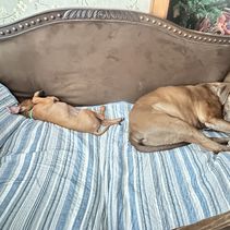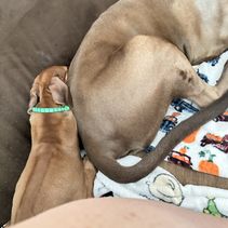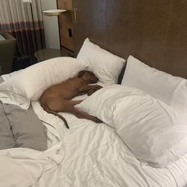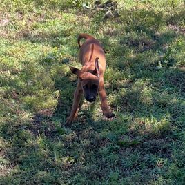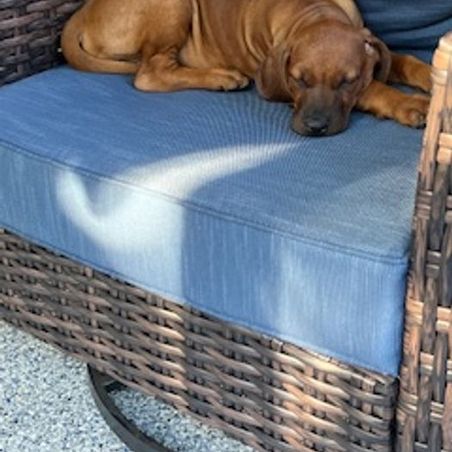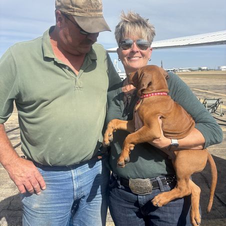 Linda was great to work with to get my new dog. I rushed to get a second dog when my heavily inbred ridgeback from a shelter was diagnosed lymphoma at 4. This new puppy was my first breeder purchased dog, after 30 years of rescue dogs. It turned out great. The puppy is smart and healthy. His embark dna came back with a lower than ridgeback breeds average for inbreeding, which was a major concern of mine. The rest of his dna results came back perfect, while he has only one of the two recessive genes for dm , he doesn’t have both so he is good genetically. He is already starting to point and he can use his nose and eyes well to track rabbits . He is also interested in birds , and I am sure he will be flushing them out of bushes soon. He also traveled well to nyc from Texas , took pictures with Frank in Hoboken and relaxed in the fancy boutique Hilton hotel. Great dog , I would definitely be back when I look for a second .
