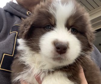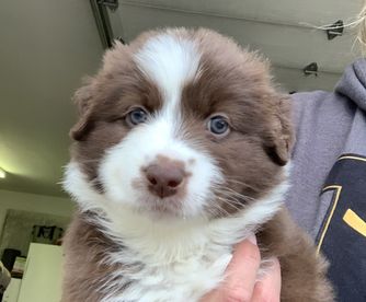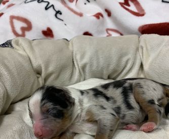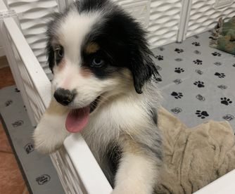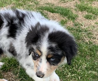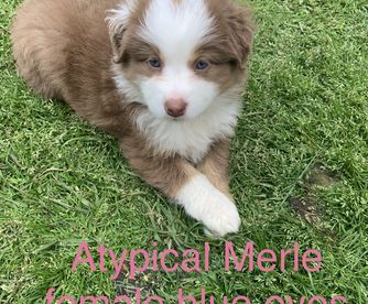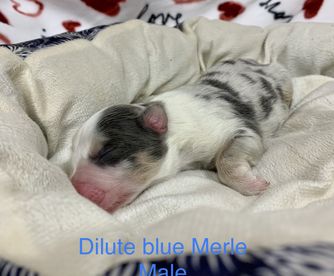 Our puppies include blue merle and red merle. Colors will vary depending on the parent dogs.