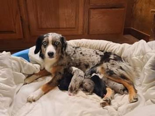 Our puppies include blue merle and red merle. Colors will vary depending on the parent dogs.