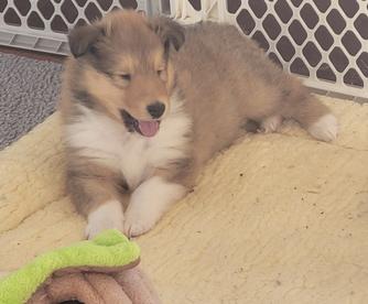 Our puppies include sable merle and white, blue merle and white, sable and white, and black white and tan. Colors will vary depending on the parent dogs.