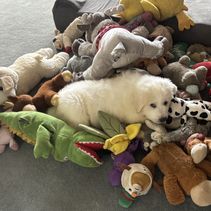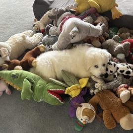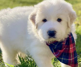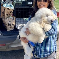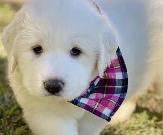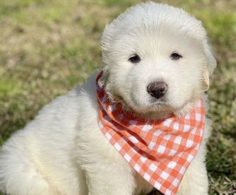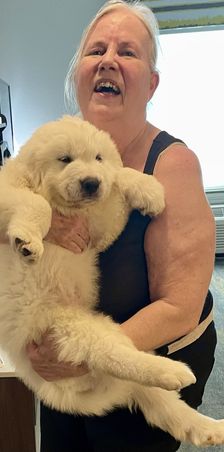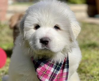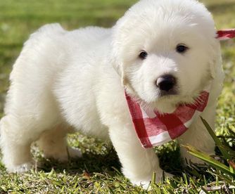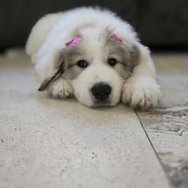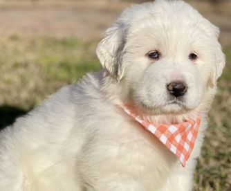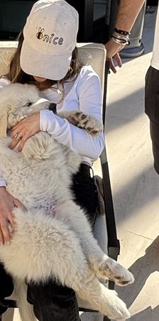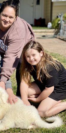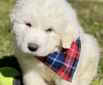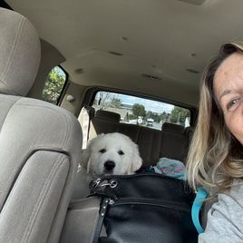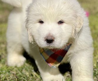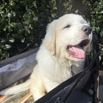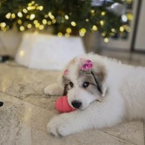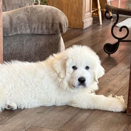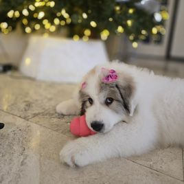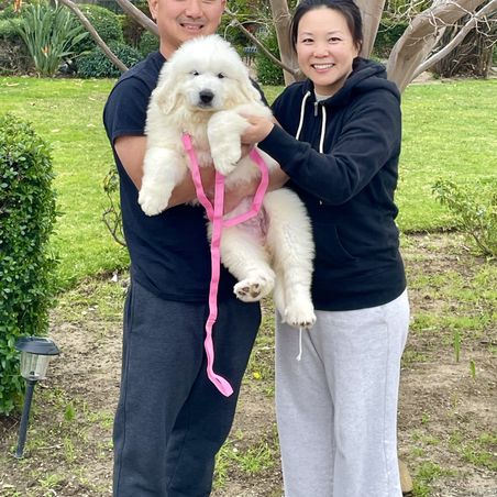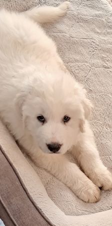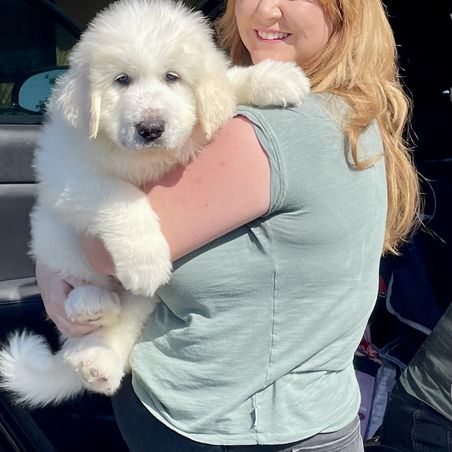 We have had our sweet, not so little Cossette for a week. She is a sweet energetic puppy. Working with Tatiana was wonderful. She replied to eveey message I sent very quickly. Gave me good tips on traveling with the puppy and was amazing. The toys and blanket she sent home with is was very sweet and Cossette still sleeps on the blanket. If I'm ever looking for another great pyrenees I would be happy to work with her again. I have already recommended River's Bend Walnut Orchard to others and will continue to do so.