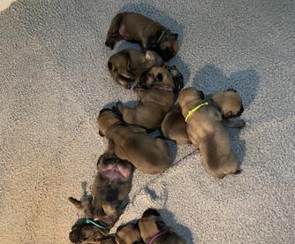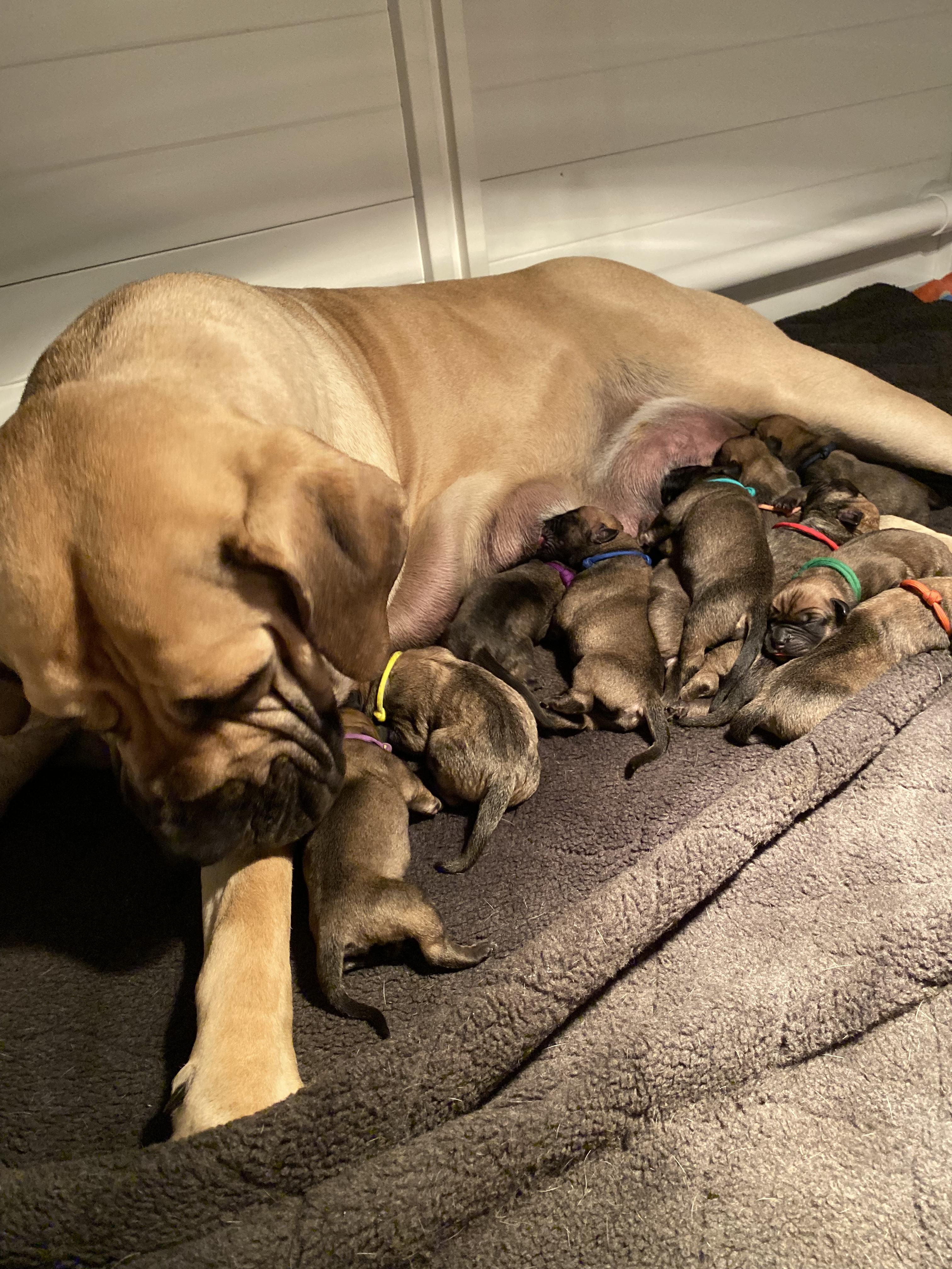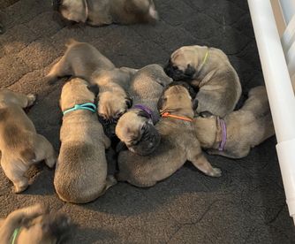 Our puppies include tawny, reddish brown, red, fawn, brindle, and brown. Colors will vary depending on the parent dogs.