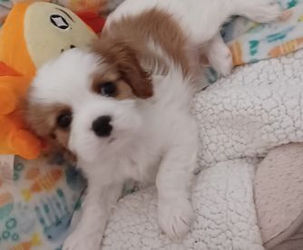 Our puppies include blenheim, ruby, black and tan, and tri-color. Colors will vary depending on the parent dogs.